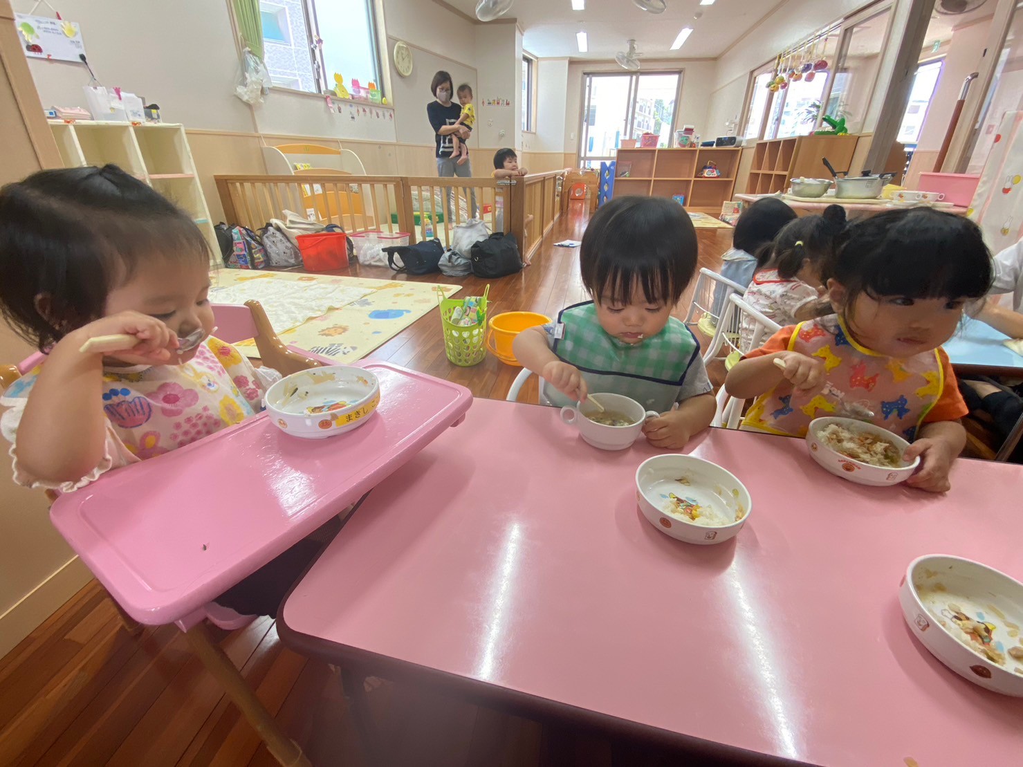 | 11:00 | お食事(月齢に合わせた離乳食、幼児食を保護者の方と話し合い進める) お着替え |